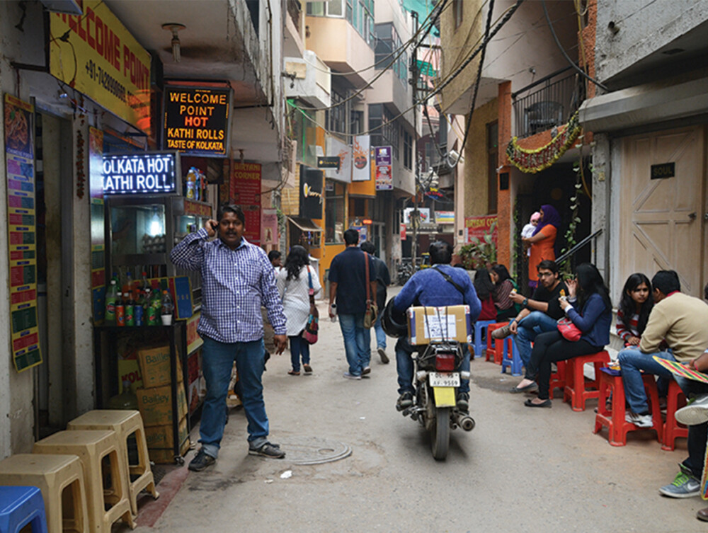 Carefully design pedestrian experiences within walking distance of key destinations such as transit stations, parks, schools, commercial districts, and neighborhood main streets. People are more likely to walk from one destination to another if the experience is convenient, comfortable, and enjoyable. Areas around key destinations and transit stops should include spaces that allow groups of people to congregate without blocking the paths of others.
