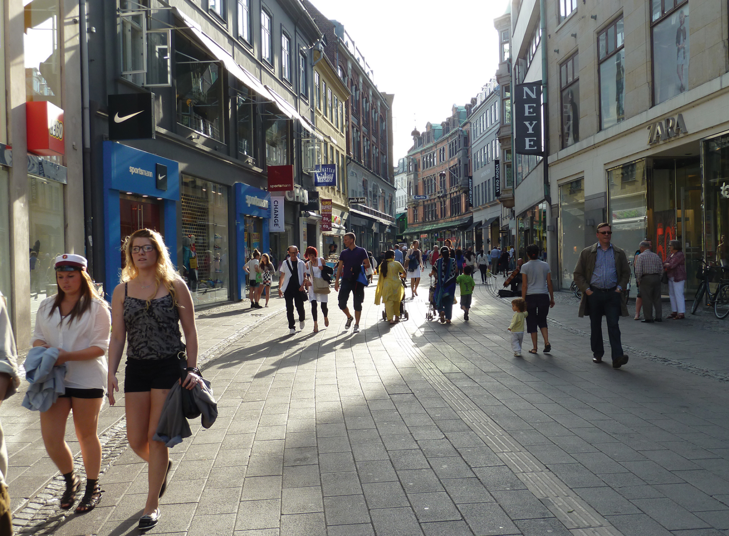 Pedestrian-only streets prioritize people and are typically most appropriate in corridors with commercial activity on both edges of the street. They are strategically selected streets in which pedestrian volume is high and vehicular traffic is restricted. These streets offer opportunities for diverse activities such as shopping or sitting, dining or dawdling, promenading or performing. When placed, designed, and maintained well, pedestrian only streets become a destination and result in economic benefits for adjacent businesses.1