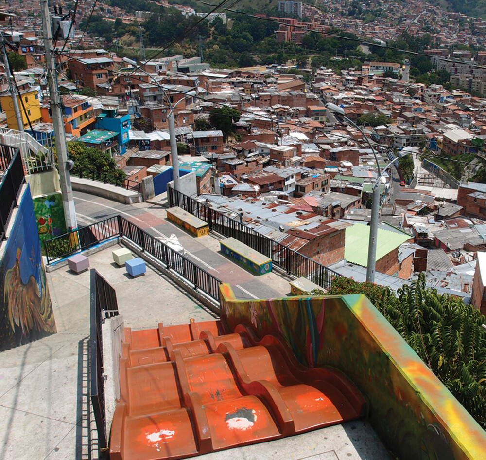 Medellín, Colombia. New streets, paths, and circulation infrastructure in Comuna 13 improve the quality of public space and access for the local community.
