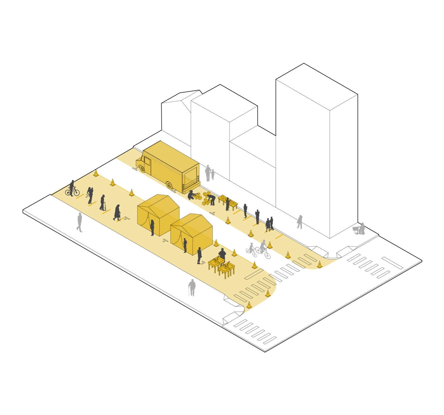 Provide space for critical/temporary food, sanitation, health, medical, or social services distribution centers.