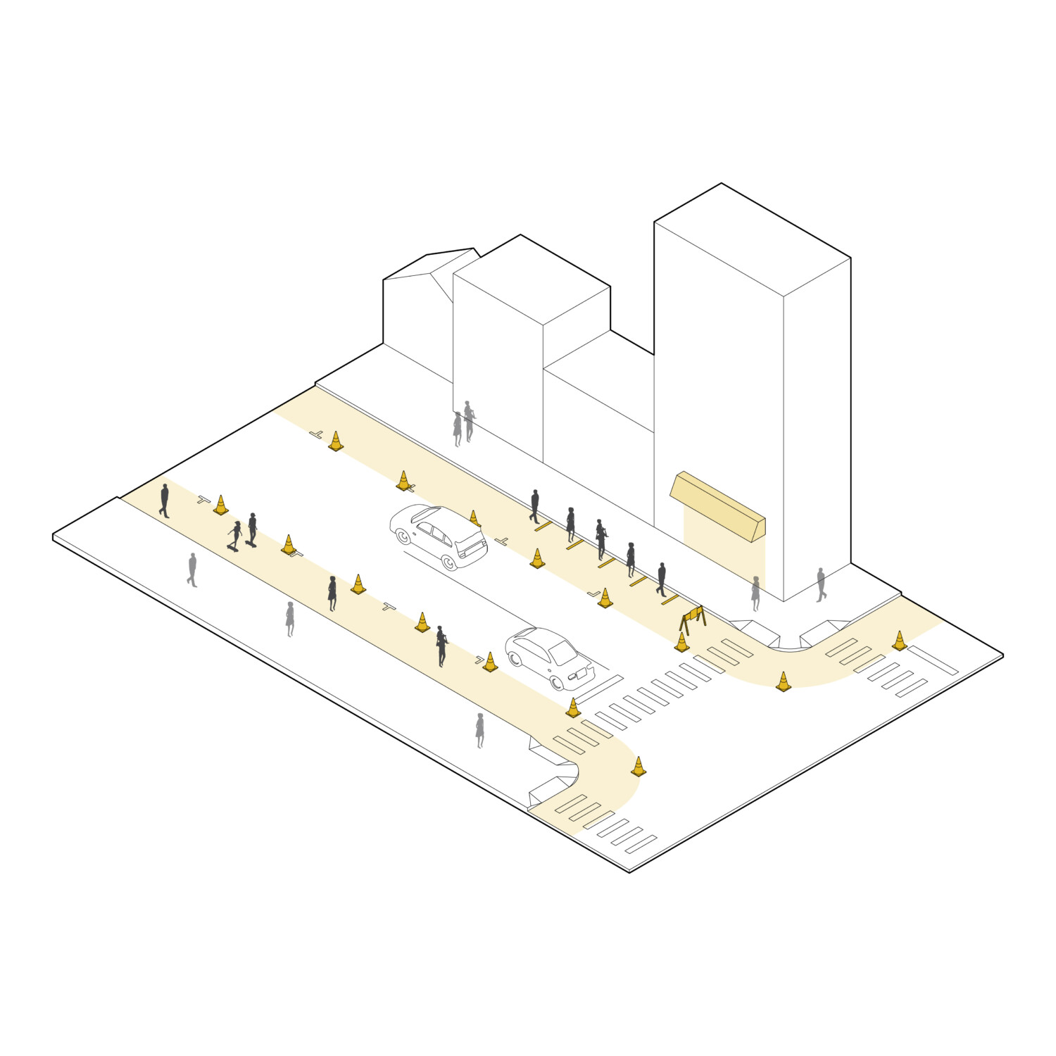 Provide space for people to comply with physical distancing guidelines while walking or waiting.