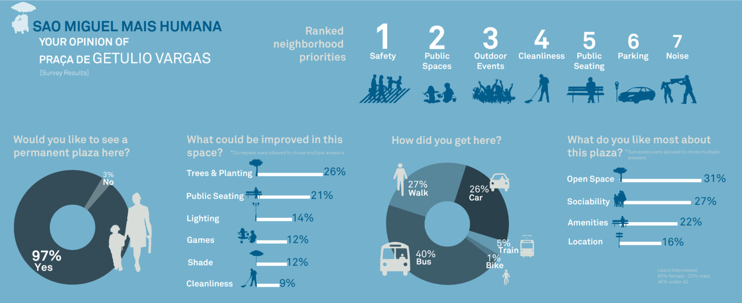 GDCI places a strong emphasis on collecting data to evaluate the design changes and most importantly to allow the community to voice their opinions. At the end of the event, almost 100 surveys were collected and an overwhelming majority (97%) of the people who participated in the survey reacted positively, expressing interest in increasing safety, public space and having out-door events in the space.