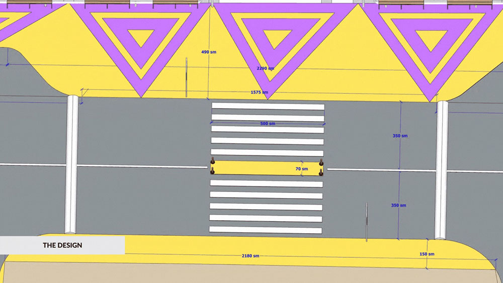 EASST, AMAK, and GDCI worked with the Sumgayit City Police and local engineers to develop plans for the temporary road infrastructure changes around the school entrance, and to make sure the plans meet local road safety regulations. GDCI also paired with local designers from ICMA LAB who brought local familiarity and expertise with tactical urbanism and street safety projects in Azerbaijan. Working together, we created a design that transformed the site to improve the safety of students and others coming to and from the school. This included creating dedicated pedestrian space for walking, waiting, and crossing the street. To ensure vehicles were traveling at a safer speed, travel lanes were also narrowed and speed humps were installed. The transformation design was based on GDCI’s street transformation methodology, which observes the street from the perspective of children, introduces temporary, low-cost interventions that involve local communities, and reduces the risk of road traffic crashes.