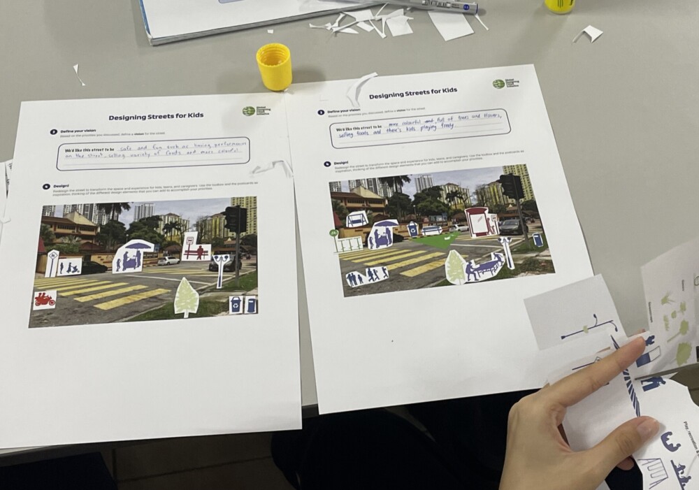 Membayangkan semula jalan sekolah bersama pelajar-pelajar sekolah menengah SMK Danau Kota: Pelajar-pelajar tingkatan 1-3 berumur 13-15 tahun mengambil bahagian secara aktif dalam membayangkan semula jalan sekolah mereka dan mengutamakan keperluan mereka. Melalui pemerhatian di tapak dan ikon grafik, mereka mereka bentuk semula jalan mereka—mengenal pasti kawasan yang memerlukan penambahbaikan dan membayangkan persekitaran yang lebih selamat dan menyeronokkan. Lee Shen Zhou, 13 tahun, berkata: “Saya ingin mereka bentuk sebuah jalan untuk kanak-kanak bermain, dengan pokok-pokok, peniaga menjual ais krim dan laluan pejalan kaki yang selamat.”