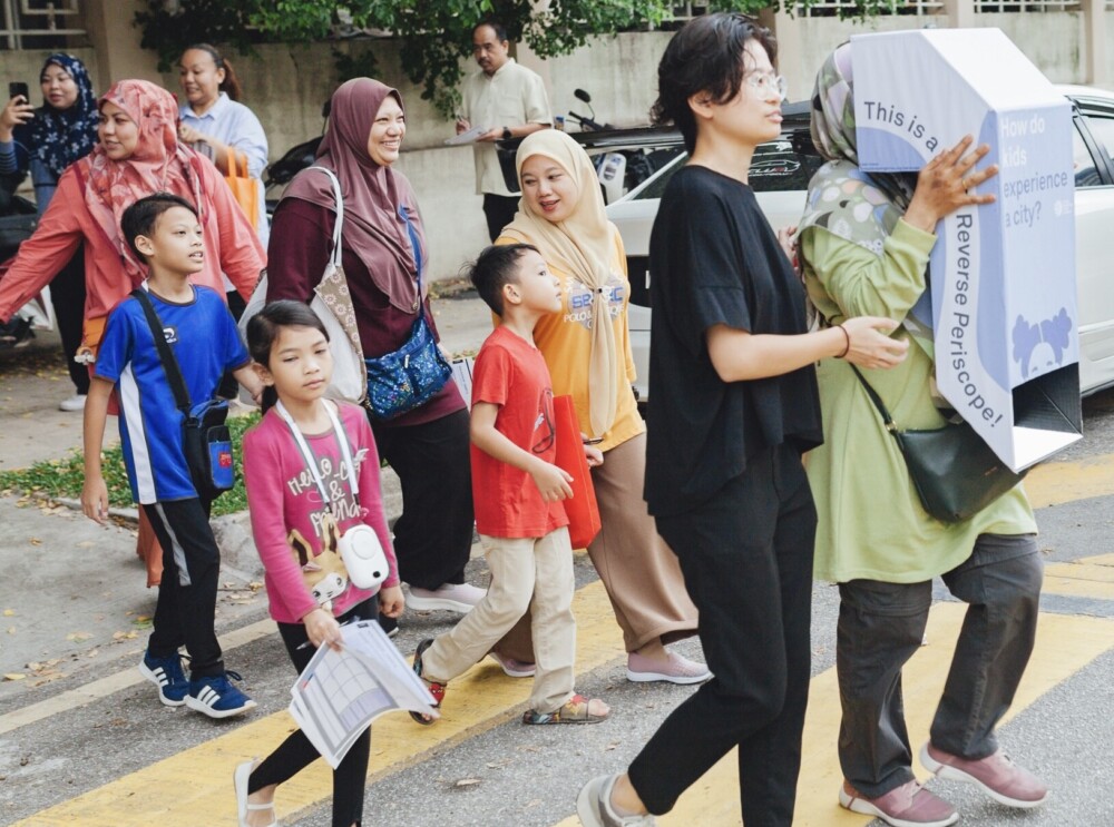 Melihat Bandar dari Perspektif Kanak-kanak: Ibu bapa dan guru-guru mengambil bahagian dalam aktiviti yang membuka mata dengan menggunakan periskop terbalik, mensimulasikan perspektif kanak-kanak pada ketinggian 95 cm. Pengalaman ini membolehkan mereka memahami cabaran yang dihadapi oleh kanak-kanak di jalan, seperti melintas jalan dan pendedahan kepada pencemaran. Pemekaan ini membolehkan GDCI mereka bentuk jalan yang memenuhi keperluan dan keselamatan kanak-kanak kecil. “Dengan penglibatan sekolah oleh GDCI, ia memberi idea kepada orang ramai tentang apa yang kita mahu jalan kita menjadi seperti. Saya menggalakkan pelajar saya menyuarakan pendapat mereka,” kata Puan Hoo —pengetua SMK Danau Kota.