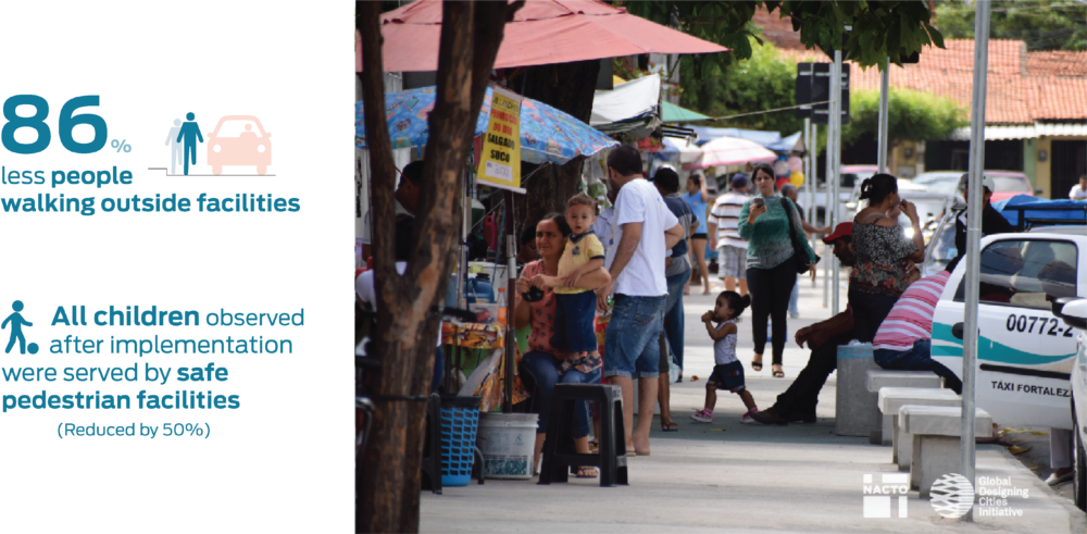 In late 2017, the GDCI team partnered with city officials, the Albert Sabin Children’s Hospital, the World Resources Institute (WRI), and Vital Strategies, through the Bloomberg Initiative for Global Road Safety (BIGRS), to transform the safety of the streets surrounding the hospital. This area, in Fortaleza, Brazil, is now equipped with safe pedestrian infrastructure that has reduced the number of people walking on the roadbed by 86%, and greatly improved accessibility to the hospital.