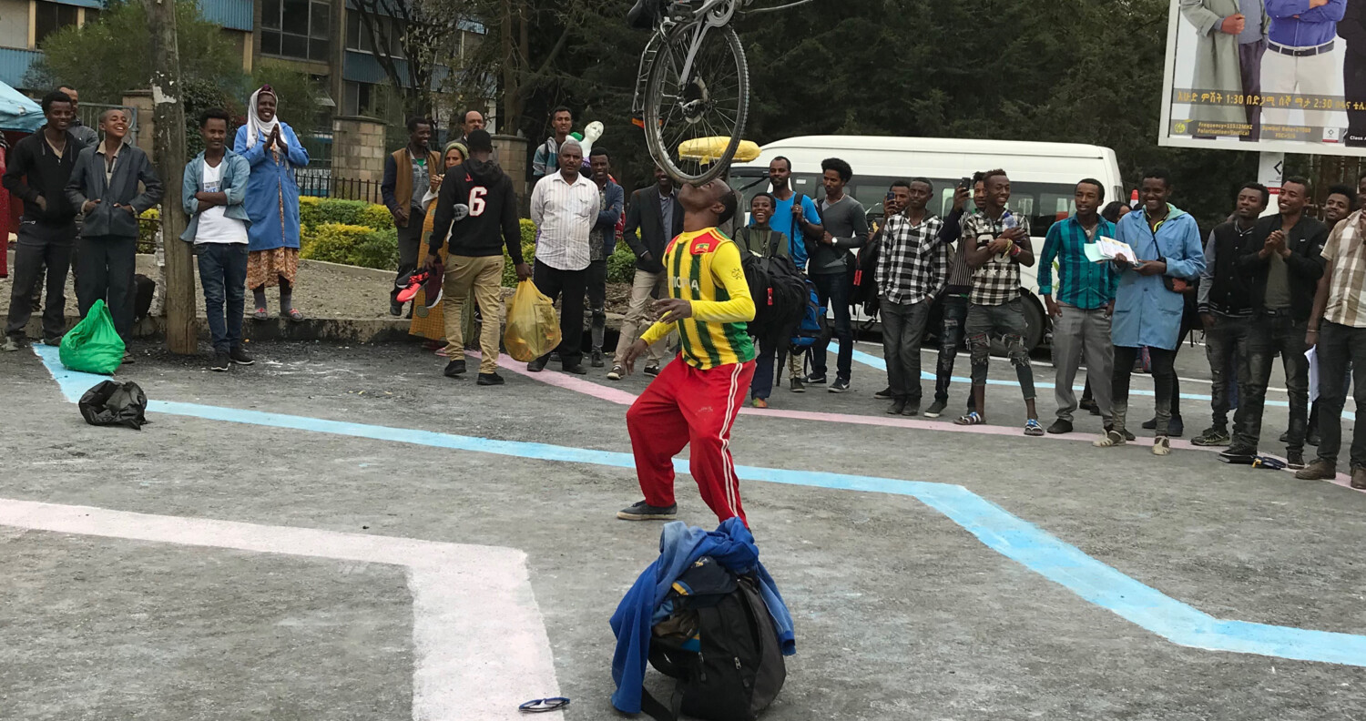 An interim intervention created space for public performers at Anbessa Zoo Intersection in Addis Ababa, Ethiopia - Photo credit: NACTO-GDCI