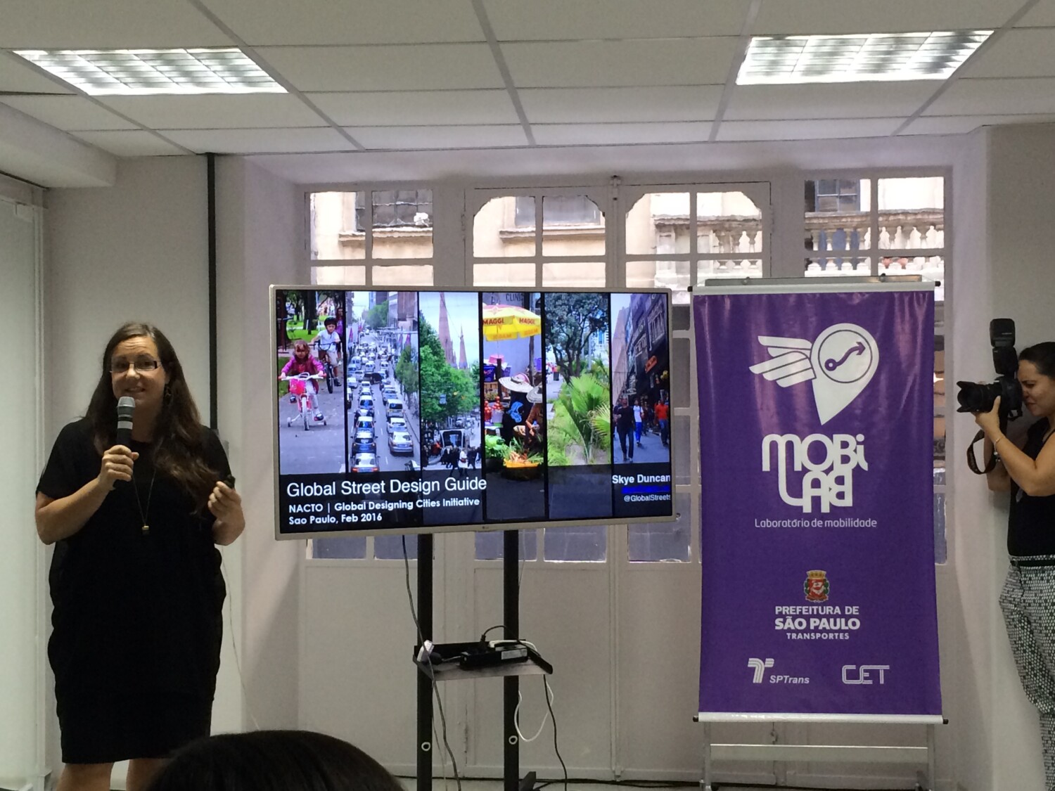 In the first week of February MobiLab organized a workshop in Sao Paulo, in partnership with NACTO – GDCI, WRI and ITDP. The GDCI team, Skye Duncan and Ankita Chachra, presented the upcoming Global Street Design Guide and participated in a discussion on Road Safety with members of WRI and ITDP. This presentation was open to public and had 100 attendees representing various government agencies, academic institutions and non-profits. Key stakeholders and local representative attended the site visit to one of the Zone 40 Areas and participated in the technical workshop conducted by the partners.